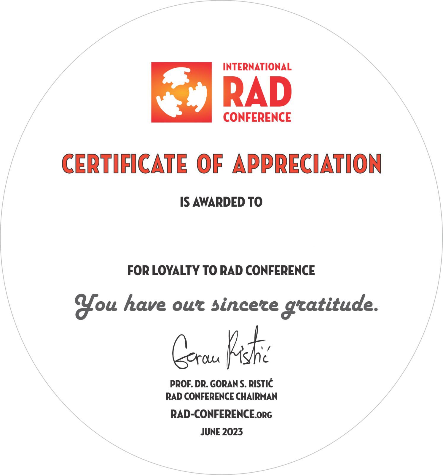 Special thanks for their loyalty to the RAD Conference!