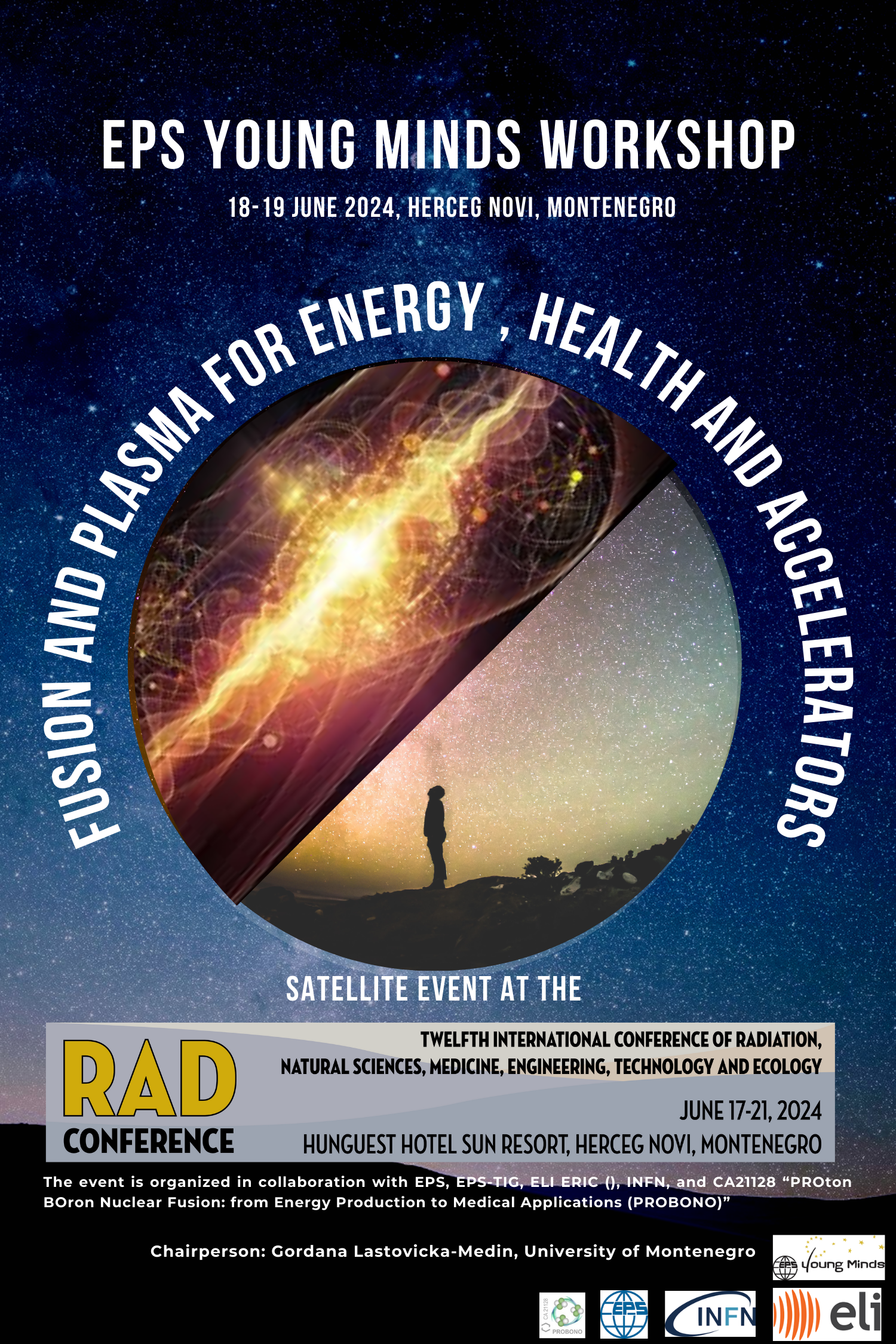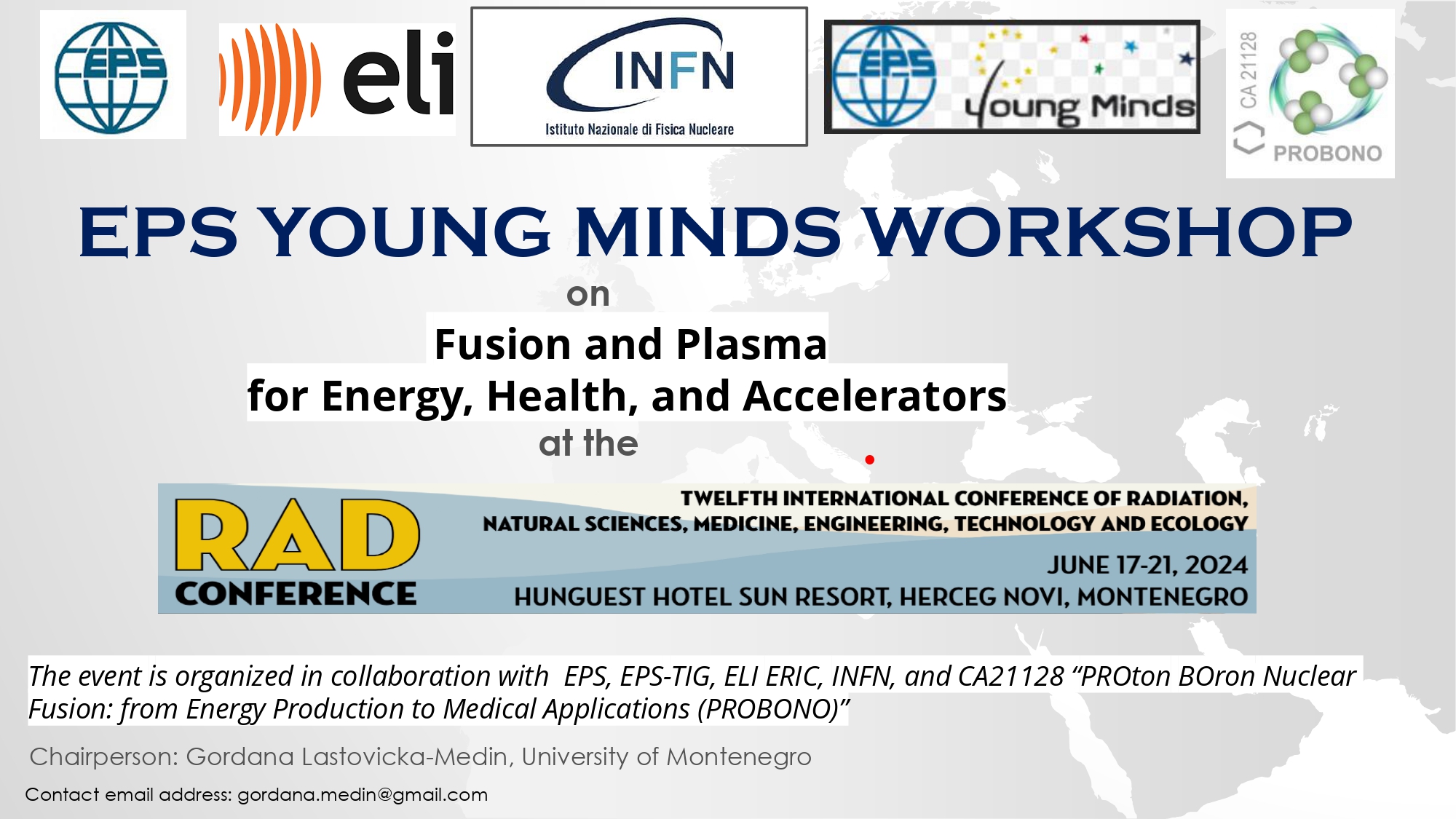 It is our pleasure to announce that the EPS Young Mind Workshop on Fusion and Plasma for Energy, Health, and Accelerators will be organized by IEPS-TIG in collaboration with ELI Beamlines, ELI ERIC and CA21128 PROton BOron Nuclear fusion: from energy production to medical applications (PROBONO), as a satellite event at the RAD 2024 Conference. The workshop offers lectures to the students and young researchers (medical physicists, nuclear engineering, electrical engineering, nuclear and HEP physicists,...).